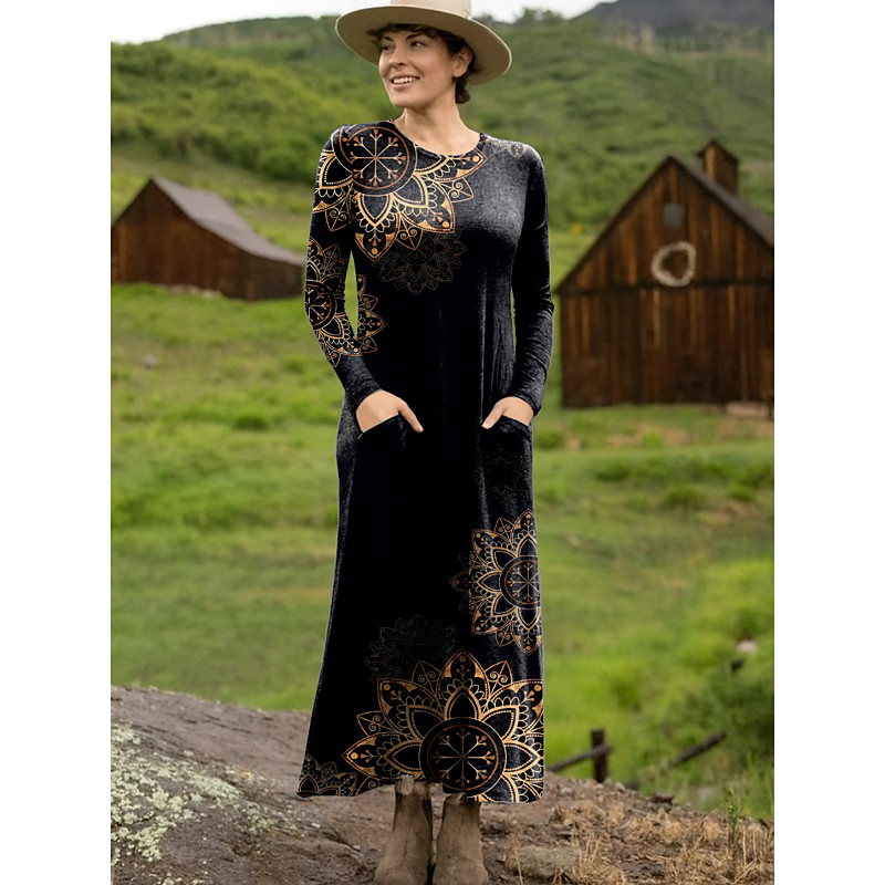 Women's Maxi Dress Vintage Bohemian A Line Dress Crew Neck Long Sleeve Casual Swing Dress Shift Dress Fashion Streetwear Modern Outdoor Daily Date Regular Fit Tie Dye Yellow Fall Winter