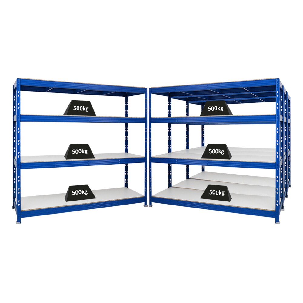 PROREGAL Mega Deal 4x Profi Schwerlastregal Rhino | HxBxT 180x200x60cm | 4 Melamin-Ebenen 16mm | Fachlast 500kg | Blau