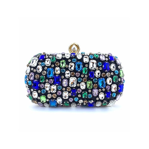 pochette da donna in poliestere con decorazioni in pietre preziose, tracolla a catena, grande capacità, vari colori - perfetta per matrimoni e feste serali