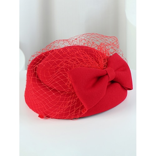 Cappello da donna per feste di Natale - in finta lana, con fiocco e rete, vari colori per le feste, perfetto per eventi festivi e moda invernale