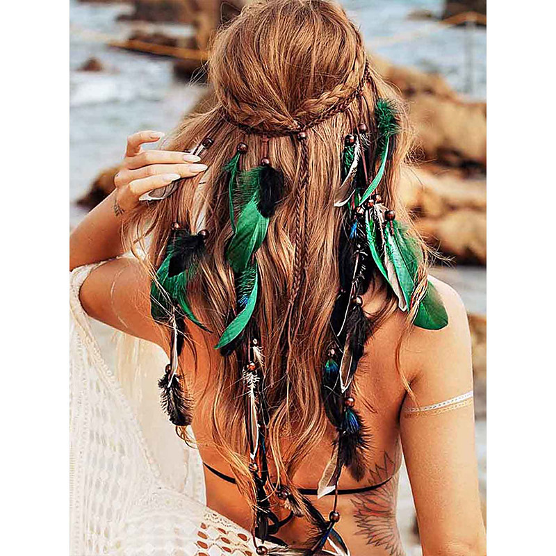 Rio Carnival Samba Accessories Bohemian Feather Hair Extension Headband - Hippie Adjustable Braided Hairpiece with Beads - Festival Rave Beach Accessory Brazil Festival Performance Costume