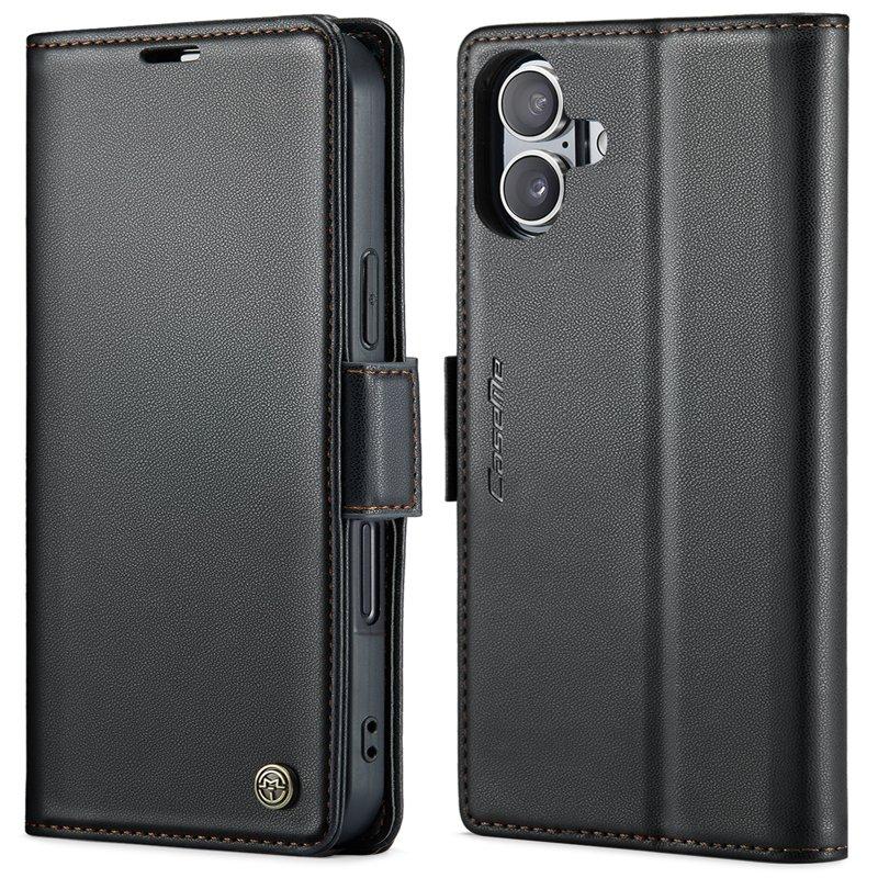 CASEME iPhone 16 Plus Plånboksfodral Konstläder RFID-Skydd Svart