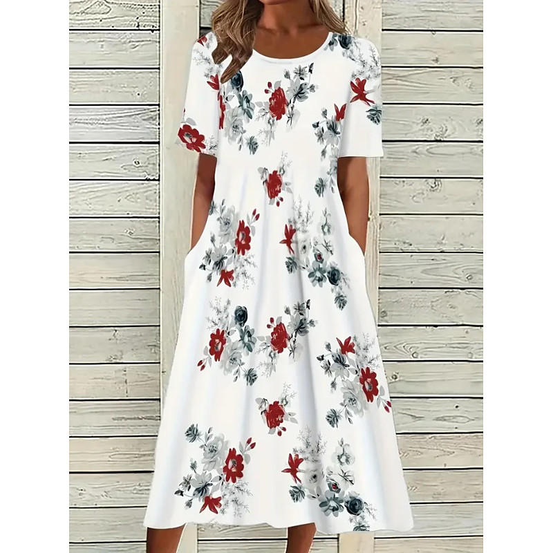 Women's Midi Dress Swing Dress Boho Dress Casual Boho Outdoor Vacation Daily Regular Fit Floral 3/4 Length Sleeve Crew Neck Round Neck White Yellow Red Blue Summer Spring