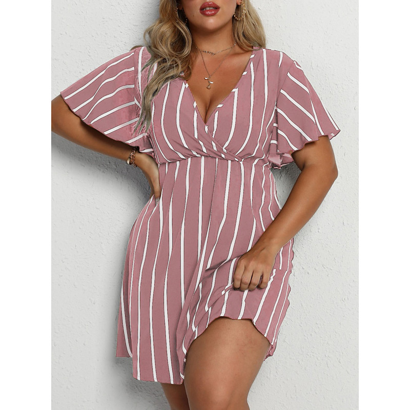 Women's Plus Size Casual Dress Striped V Neck Short Sleeve Summer Spring Fashion Modern Casual Mini Dress Daily Holiday Dress