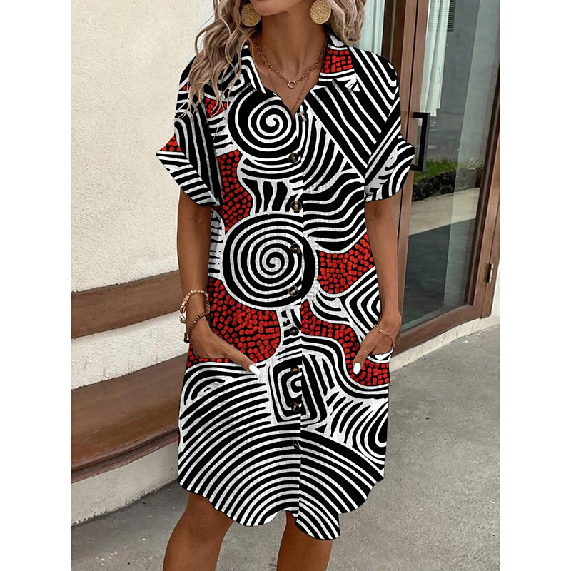 Women's Mini Dress Shirt Dress Beachwear Tribal Print Shirt Oversized Long Sleeve Roll-Up Collar High-Low Hem Casual Lightweight Spring Summer Wear