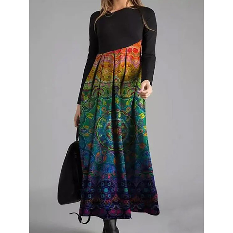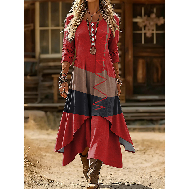 Women's Midi Dress Shift Dress Casual Daily Holiday Regular Fit Floral Graphic Long Sleeve Crew Neck Blue Red Purple Green Spring Winter