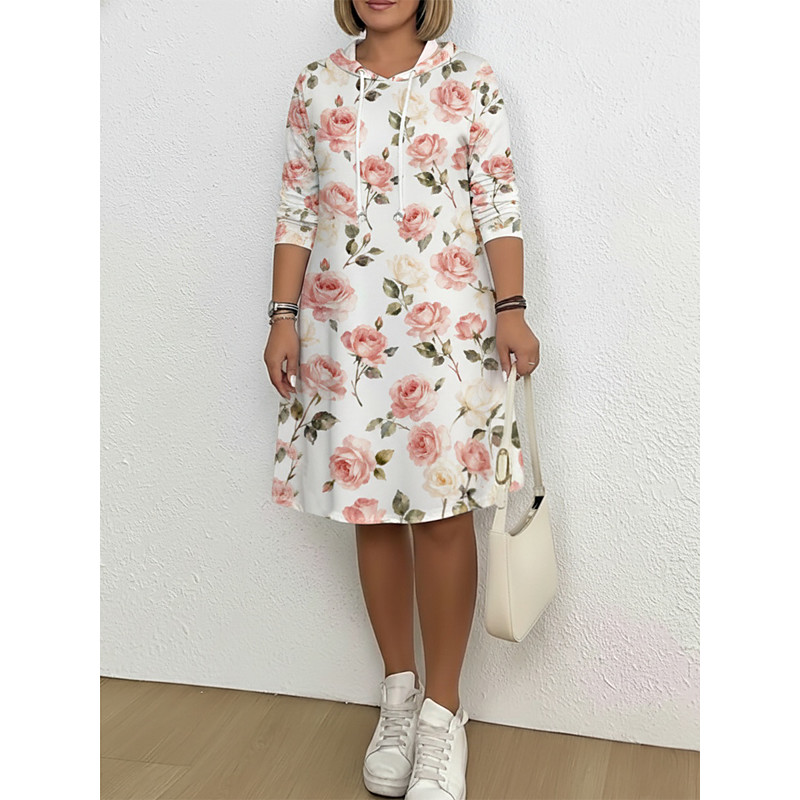 Women's Mini Dress Hoodie Dress Casual Dress Elegant Fashion Modern Daily Outdoor Weekend Regular Fit Floral Long Sleeve Hooded White Spring Fall