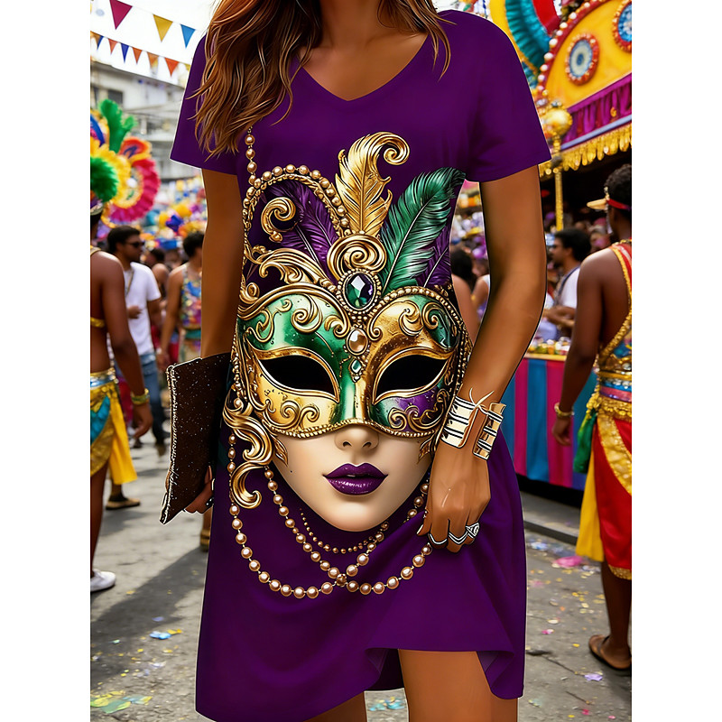 Women's Mini Dress Casual Dress T Shirt Dress Tee Dress Summer Dress Elegant Vacation Vintage Cold Shoulder Regular Fit Ombre Graphic Geometric Short Sleeve V Neck Red Blue Purple Green Summer Spring