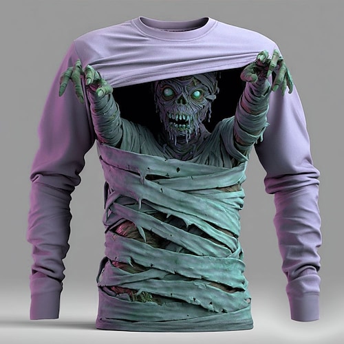 Herren Optische Täuschung Zombies 3D T Shirt Langarm T-Shirt 3D-Druck Rundhalsausschnitt Hemd Mode Übertrieben Straße Lässig Täglich Blau Purpur Grün Sommer Frühling Herbst Bekleidung S M L XL XXL