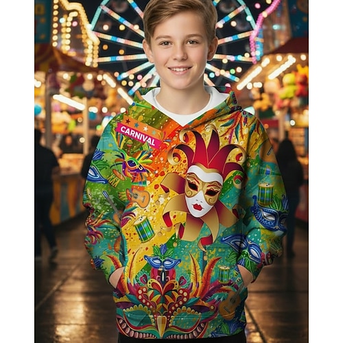 Karnival Jungen 3D Grafik Maske Karneval Kapuzensweatshirt Pullover Langarm 3D-Druck Frühling Herbst Sport Mode Streetwear Kinder 4-12 Jahre Mit Kapuze Lässig Täglich Outdoor Normale Passform