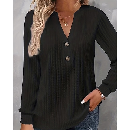 Per donna Maglietta Tinta unica Elegante Moda Manica Lunga Scollo a V Top Regolari Quotidiano Weekend Bottoni Blu Nero Bianco Giallo Rosa Primavera Autunno