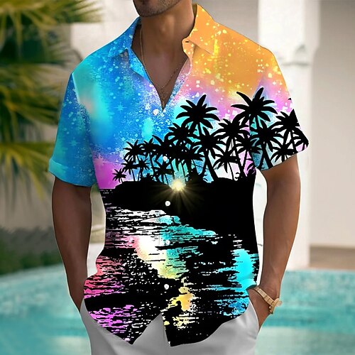 Per uomo Albero di Cocco Natura e paesaggi Piante Tropicali Camicia hawaiana estiva Camicia con Bottoni Camicia Aloha Manica Corta Hawaiano Casuale Vacanza Estate Primavera Collo ripiegato Stampa 3D