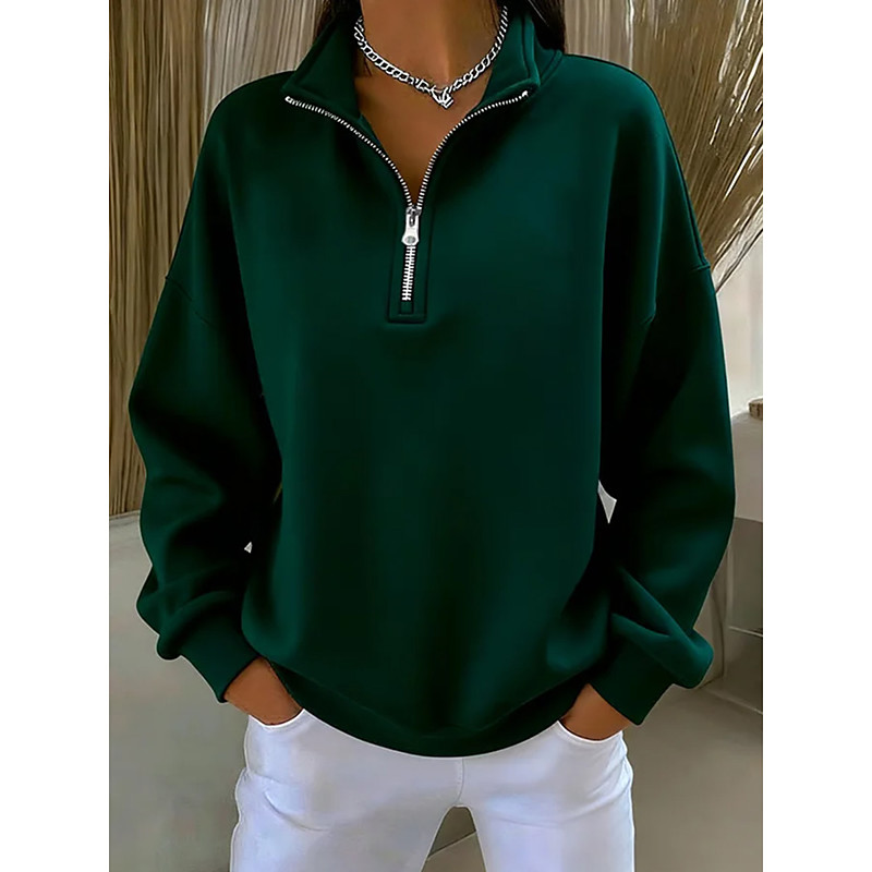Women's Pullover Sweatshirt Plain Casual Long Sleeve Half Zip Regular Tops Dailywear Casual Sports Red Blue Green Fall Winter