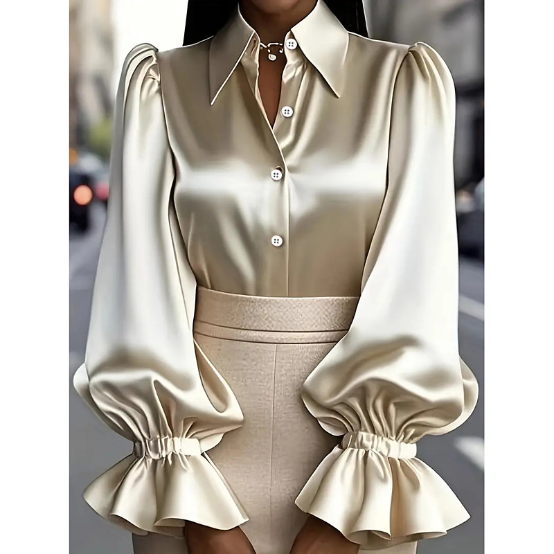 Women's Shirt Elegant Dressy Satin Plain Elegant Daily Shirt Collar Regular Tops Daily Black Pink Wine Green Apricot Fall