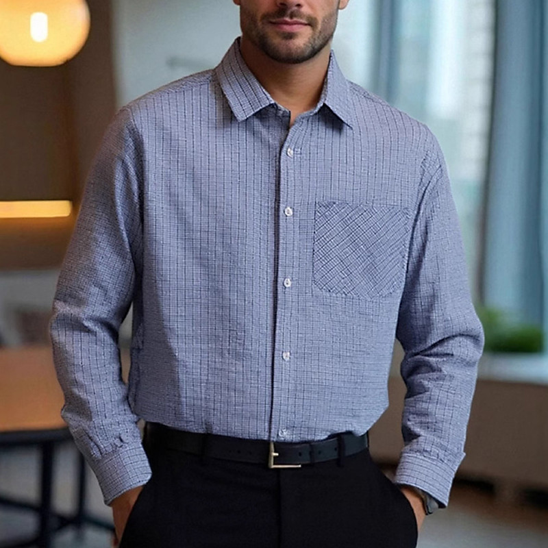 Men's Shirt Dress Shirt Button Up Shirt Plaid Wedding Daily Blue Dark Blue Gray Long Sleeve Turndown Spring Fall Clothing Apparel Front Pocket