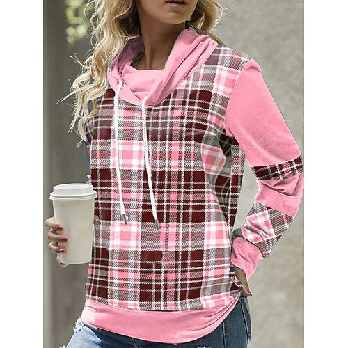 Per donna Pullover Felpe con cappuccio Plaid Streetwear Casual Manica Lunga Con Cappuccio Top Regolari Streetwear Abbigliamento Quotidiano Stampato Rosa Viola Arancione Verde Autunno Inverno