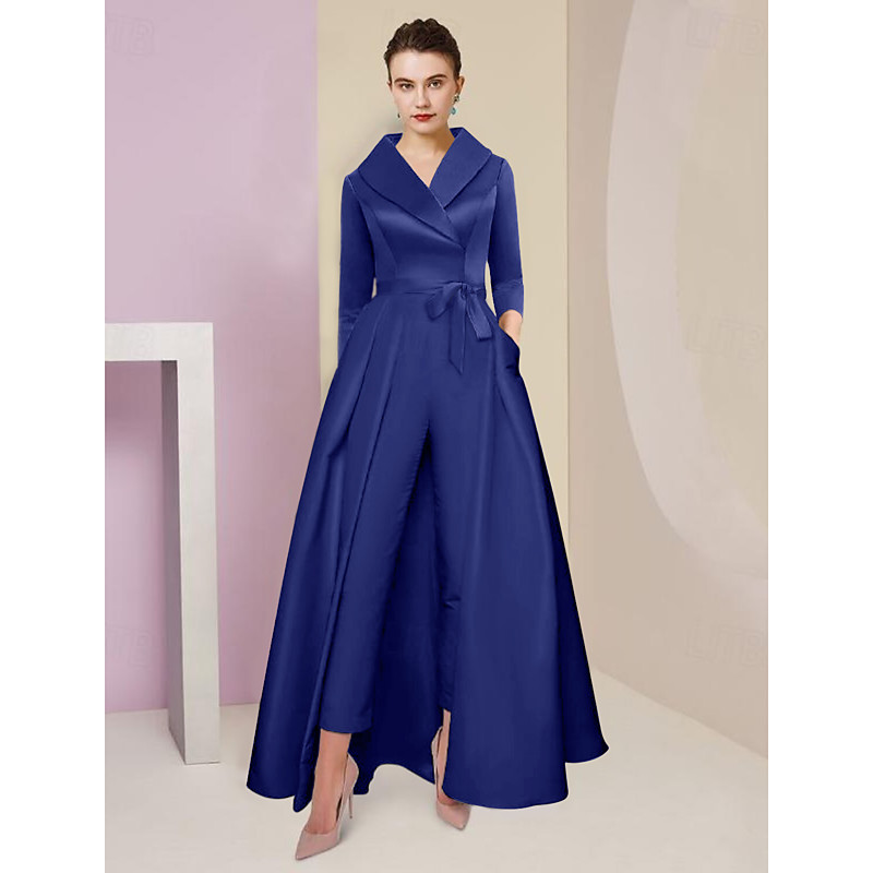 Jumpsuit Pantsuit Ankle Length Mother of the Bride Dress 3/4 Length Sleeve Shirt Collar Elegant Party Simple Formal Wedding Guest Satin with Bow(s)