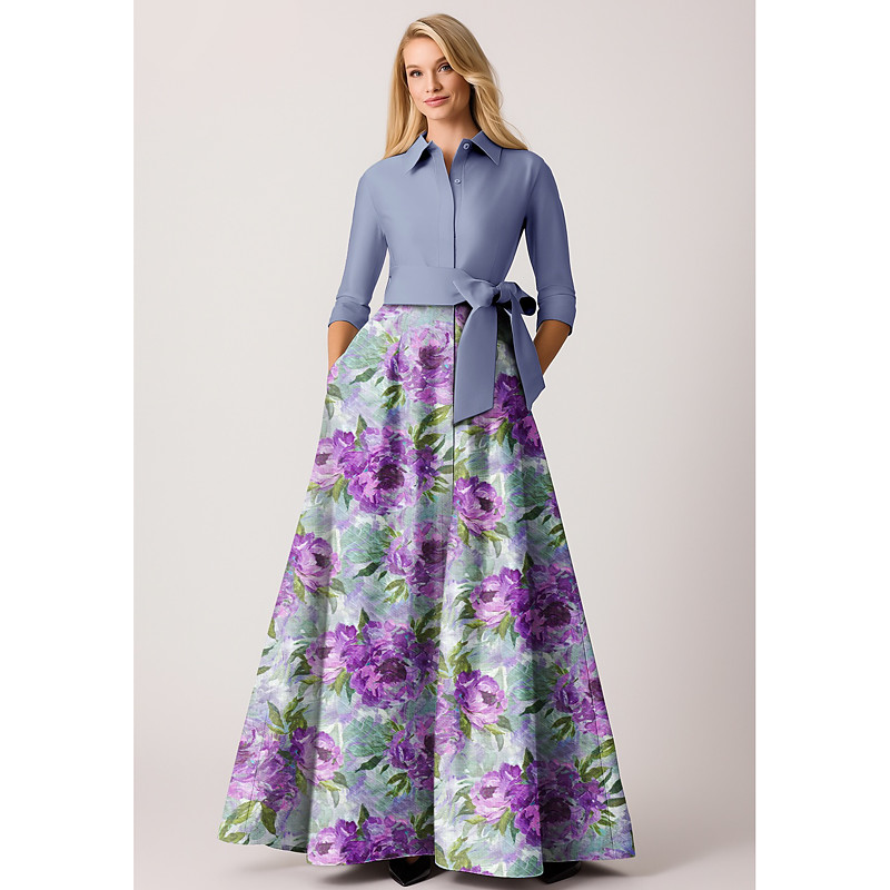 A-Line Floor Length Shirt Dress Wedding Guest Dress Formal Dresses Mother of the Bride Dress Long Sleeve Shirt Collar Elegant Vintage Wedding Formal Nylon with Floral Print Bow(s) Slit
