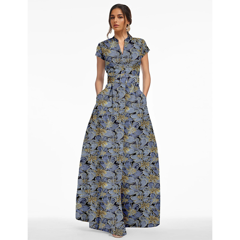 A-Line Floor Length Wedding Guest Dress Formal Dresses Evening Gown Mother of the Bride Dress Short Sleeve V Neck Elegant Vintage Wedding Formal Nylon with Slit Pocket