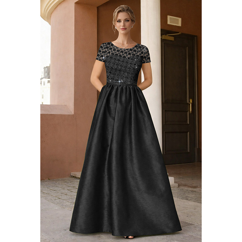 A-Line Floor Length Beaded Eembroidered Formal Dresses Mother of the Bride Dress Evening Gown Elegant Embellished Semi-formal / Cocktail Short Sleeve Scoop Neck Evening Party Wedding Taffeta with