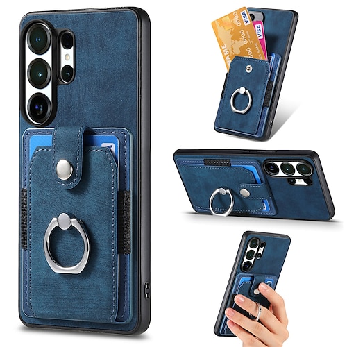 Handy Hülle Handyhüllen Für Samsung Galaxy S26 S26 Plus S26 Ultra Rückseite Mit Ständer Kartenfach Ringverschluss Retro TPU PU-Leder