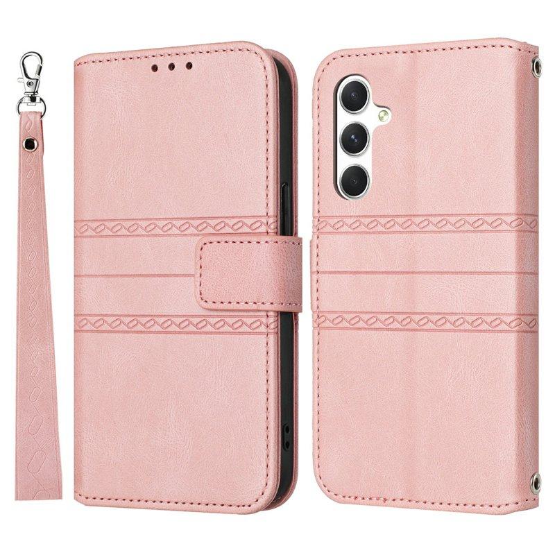 Plånboksfodral för Samsung Galaxy S26 Konstläder med handledsrem - Rosa