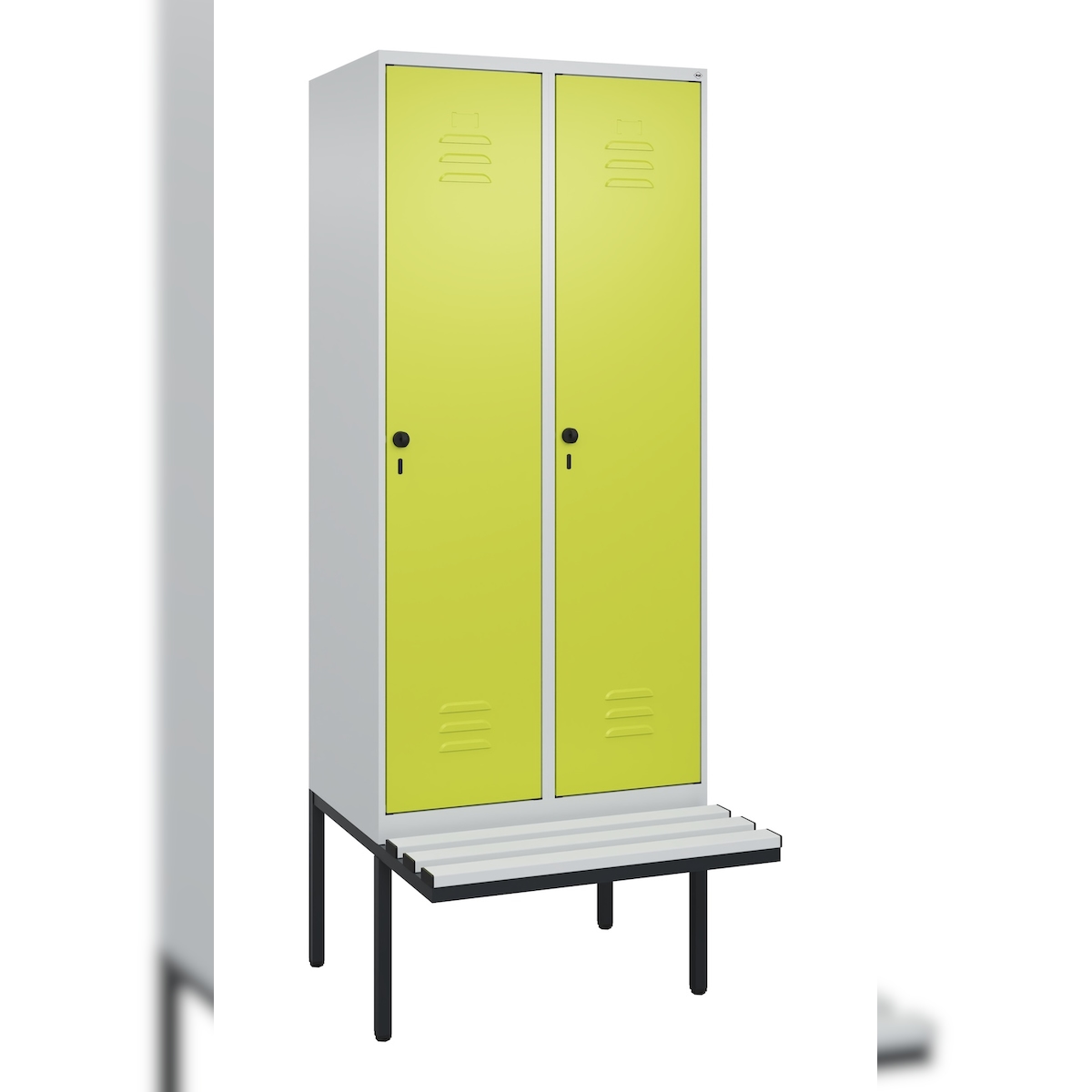C+P Spind Classic PLUS, Kunststoff schwebende Sitzbank, 2 Abteile, HxBxT 212x80x82cm, Sicherheitsdrehriegel, Hellgrau/Clowngrün von PROREGAL