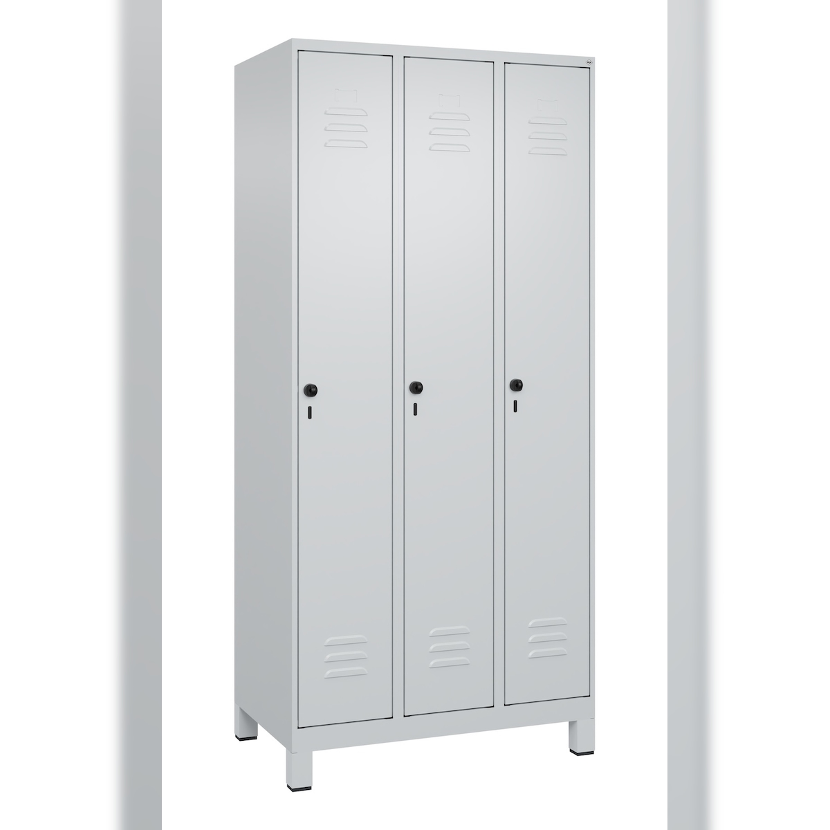 C+P Spind Classic PLUS, Füßen, 3 Abteile, HxBxT 195x90x50cm, Sicherheitsdrehriegel, Hellgrau/Hellgrau von PROREGAL