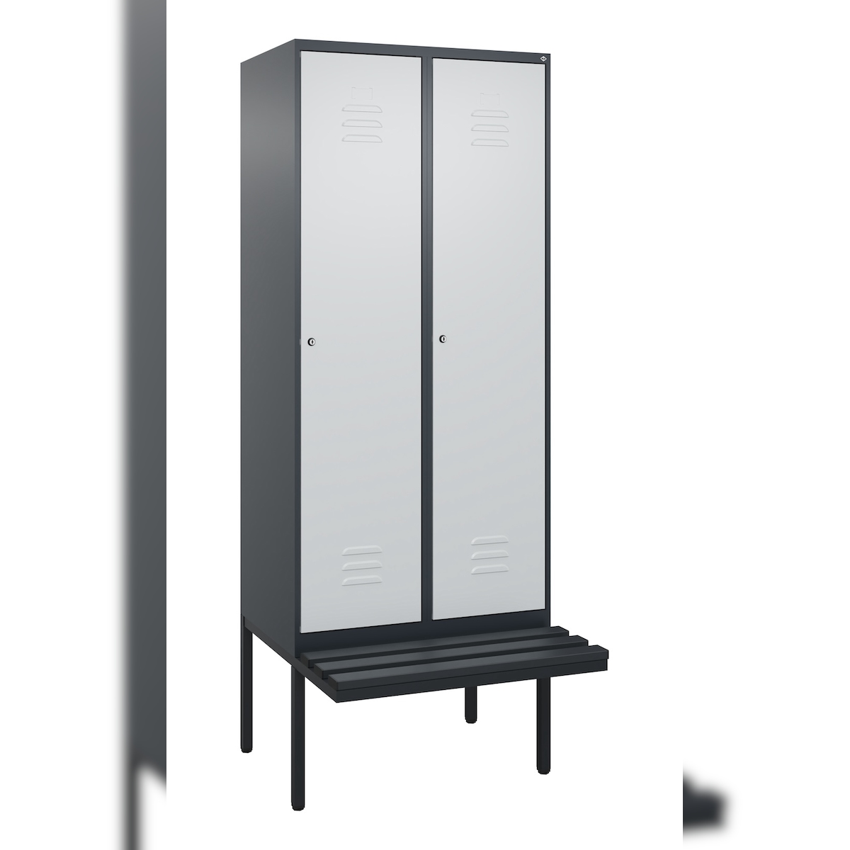 C+P Spind Classic PLUS, Kunststoff schwebende Sitzbank, 2 Abteile, HxBxT 212x80x82cm, Zylinderschloss, Anthrazit/Hellgrau von PROREGAL
