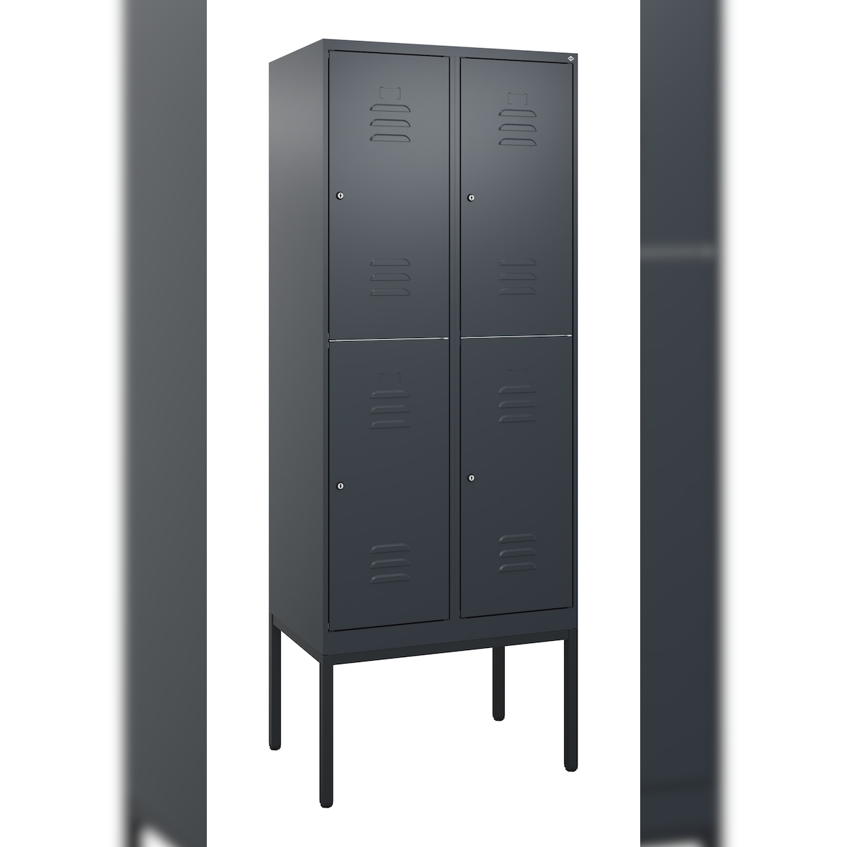 C+P Schwarz-Weiß-Spind Classic PLUS, Füße, 4 Abteile, 1950x1200x500mm, 7016/7035