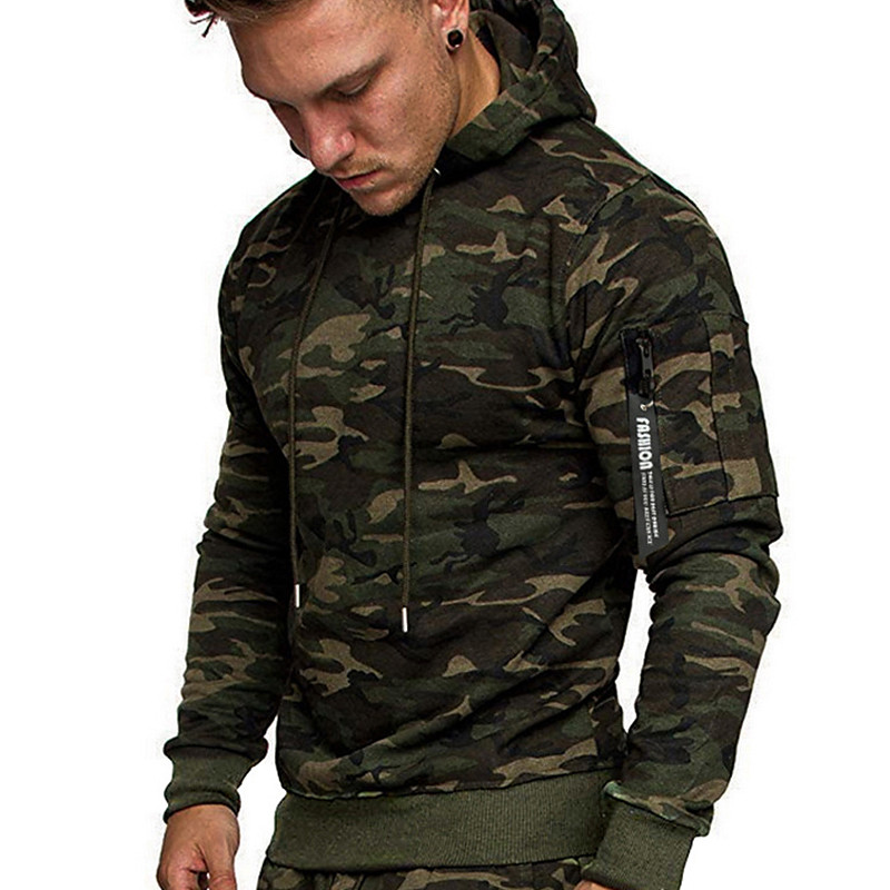 Men's Hoodie Green Gray Hooded Camouflage Drawstring Sports Outdoor Daily Holiday Polyester Streetwear Basic Casual Spring Autumn / Fall Clothing Apparel Hoodies Sweatshirts