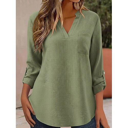 Per donna Top estivi Blusa Top Eleganti Arricciato Patchwork Tasca Tinta unica Semplice Elegante Vintage Signore Manica 3/4 Colletto a Camicia Top Regolari Quotidiano Lavoro Uscire Blu Giallo Viola
