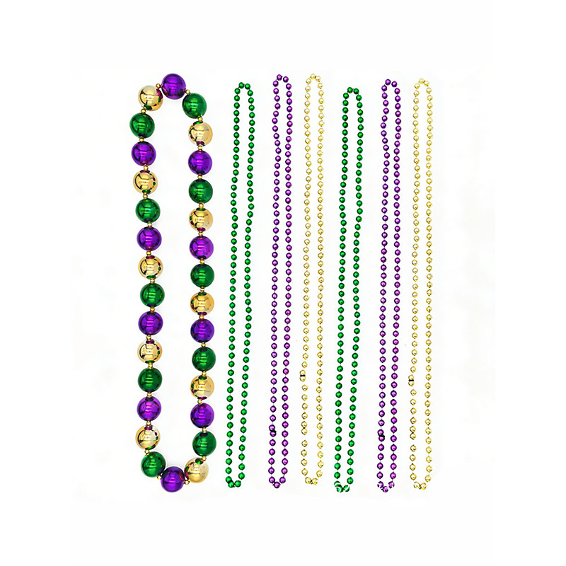 Women's Plastic Mardi Gras Bead Necklace Set – Colorful Green, Purple, and Gold, Perfect for Carnival and Masquerade Parties