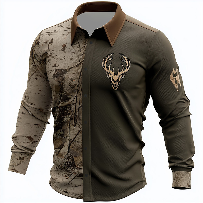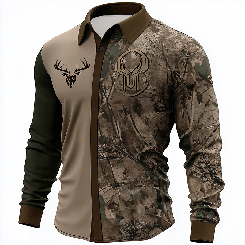 Men's Camo Reindeer Camouflage Shirt Button Up Shirt Long Sleeve Vintage Retro Outdoor Camping Hiking Hunting Spring Fall Turndown 3D Print Collared Shirts Camouflage khaki Army Green Khaki