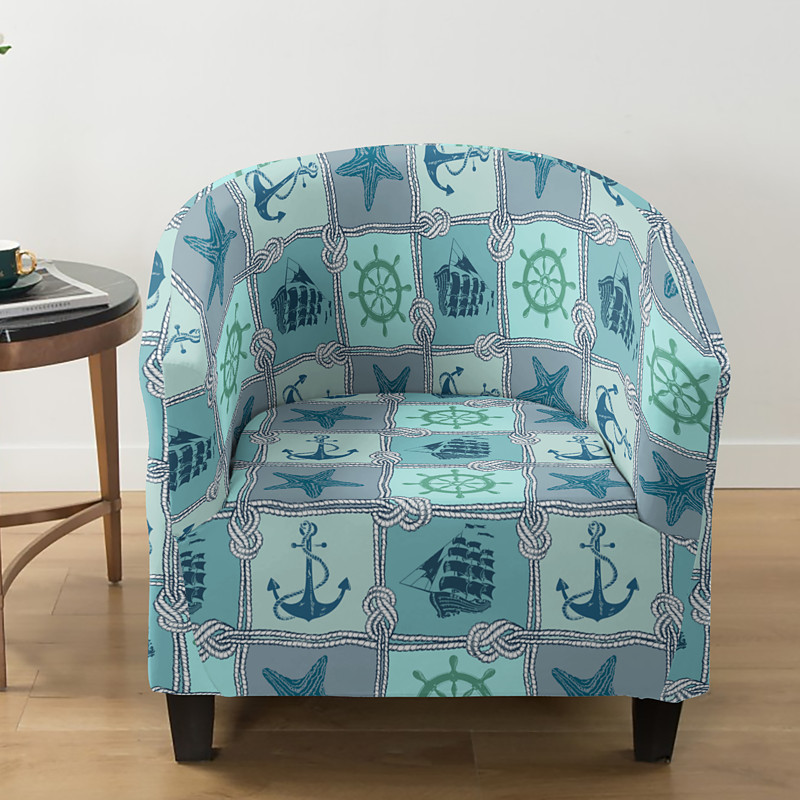 1 Pc Club Chair Cover Striped Plant and Geometric Printed Polyester Slipcover for Single Seat Chair Living Room Bedroom Home Office