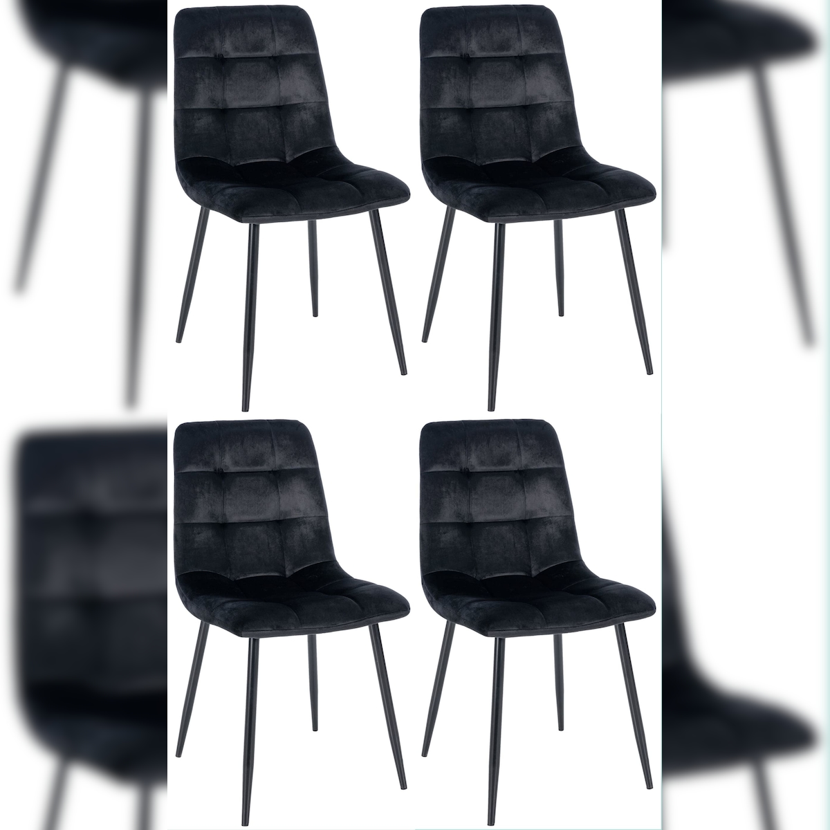 DELUKE® Esszimmerstühle 4er Set VOUL - Schwarz, Samt Gesteppter Polsterstuhl Küchenstuhl mit Bodenschonern Esszimmerstuhl Stuhl Esszimmer Küchenstühle