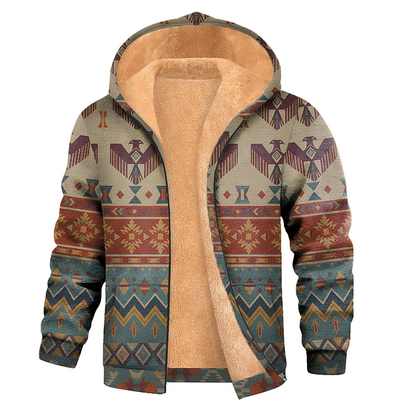 Men's Tribal Fleece Hoodie Jacket Sweatshirt Ethnic Classic Vintage Retro Crew Neck Outdoor Camping Blue Brown Zip Up Fall Winter Designer S M L XL 2XL 3XL