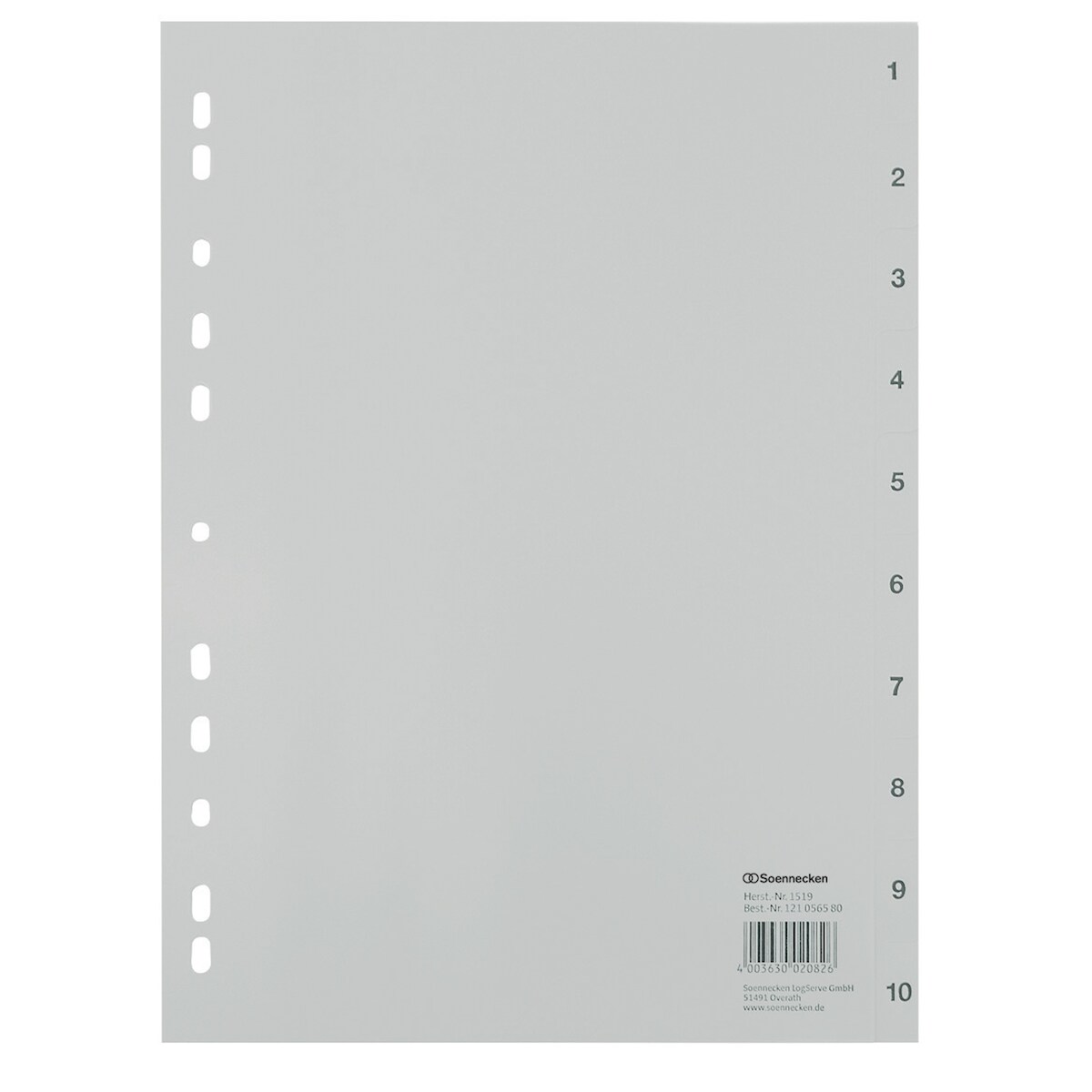 Soennecken Register 1519 DIN A4 1-10 volle Höhe PP grau