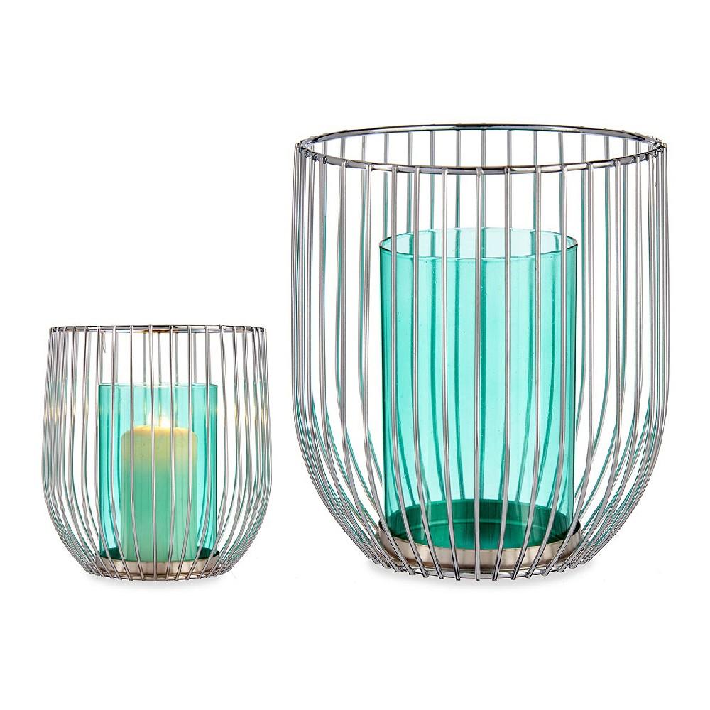 Lysestage bur - blå glas, sølv metal, 15 × 17 × 15 cm