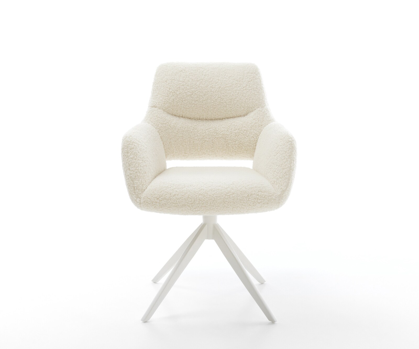 DELIFE Draaistoel Yago-Flex met armleuning teddy beige kruisframe breed wit 360° draaibaar rocker-functie pocketveer kern