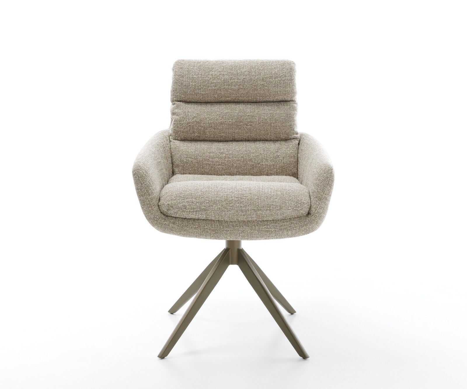 DELIFE Draaistoel Abelia-Flex met armleuning geweven stof beige kruisframe breed afwerking met titanium 360° draaibaar rocker-functie