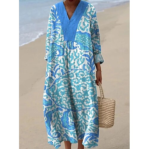 Per donna Abito maxi Vestito Estivo Abito a Tubino Vacanza Casual Spiaggia Uscire Vestibilità comoda Grafico Geometrico Astratto Manica Lunga Scollo a V Blu Marrone Cachi Estate Primavera