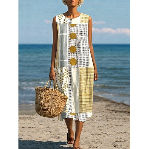 Per donna Abito Midi Vestito Estivo Abito a Tubino Abito a trapezio Vacanza Casual Boho Spiaggia Uscire Vestibilità comoda Grafico Geometrico Senza Maniche Girocollo Blu Bianco Giallo Rosa Estate