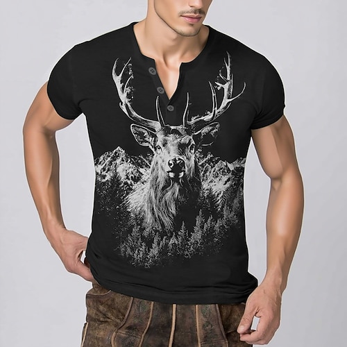 bavarese Monaco Tedesco Corte Maglietta Lederhosen Match Camicia Henley Cervo Grafico per Per uomo Adulti Stampa 3D per Carnevale Birra Oktoberfest Feste
