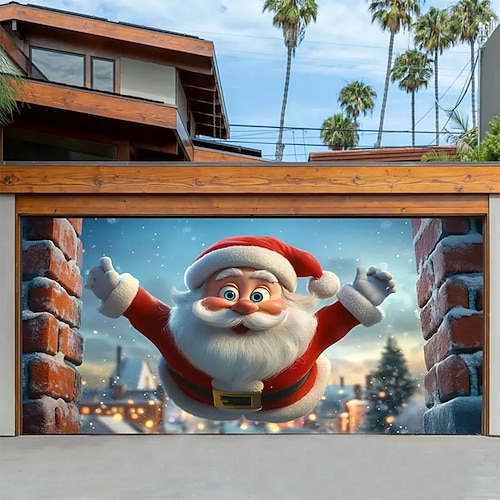 Natale Copertura per porta del garage Grande appeso Regalo Babbo Natale Carino 3D Da serata All'aperto Vacanze Sfondi di ripresa Yarda Arredamento per la casa