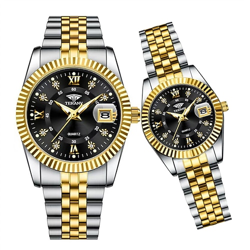due nuovi orologi da polso al quarzo alla moda con quadrante romano per coppie, resistenza all'acqua IPX7, display luminoso del calendario, cinturino in lega - regalo ideale per appuntamenti informali