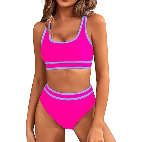 Per donna Bikini Bikini a vita alta con volant 2 pezzi Patchwork Protezione UV Alta elasticità Senza Maniche Costume da Bagno Surf Immersione Snorkeling Estate