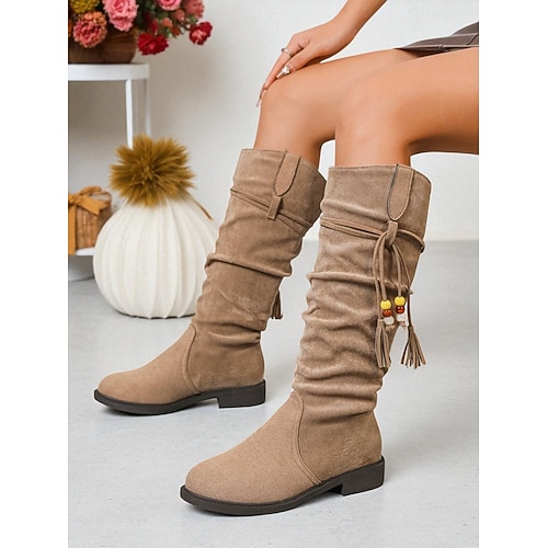 stivali alti fino al ginocchio da donna color cachi con dettagli in nappa – stivali invernali casual in finta pelle scamosciata per tutti i giorni e per le feste