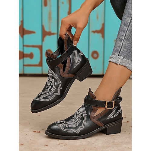 stivaletti western marroni da donna – scarpe in finta pelle in stile cowboy retrò per outfit autunnali e festival