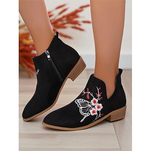 stivaletti rossi da donna – stivaletti bassi con cerniera ricamata in finta pelle scamosciata per Natale, feste e stile casual